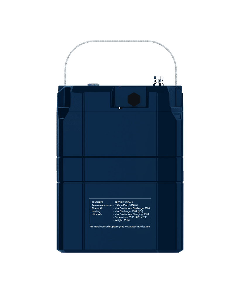 Backed by an 11-year manufacturer warranty, the Epoch 460Ah battery is engineered for users who require dependable, high-performance power storage in both mobile and stationary applications.