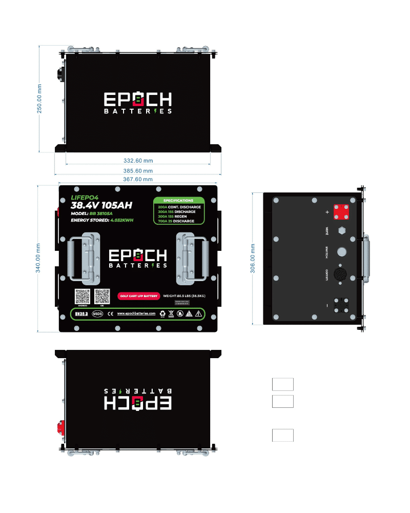 Epoch 36V 105Ah – LiMax Series – Lithium (LiFePO4) Golf Cart Battery – Complete Kit