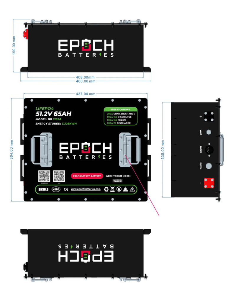 Power your golf cart with confidence using the LiMax Series 48V 65Ah Lithium LiFePO₄ Battery Kit from Epoch Batteries. Engineered for maximum performance and zero maintenance, this all-in-one battery delivers longer run times, consistent power, and advanced monitoring, making it the perfect upgrade over traditional lead-acid batteries.