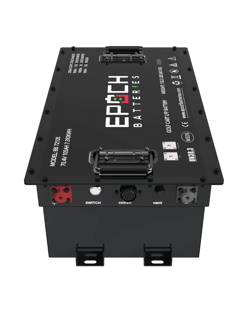 Upgrade your golf cart to modern lithium power with this 72V (70.4V nominal) 105Ah LiFePO₄ battery complete kit, designed as a direct replacement for traditional lead-acid systems. This all-in-one solution delivers higher efficiency, longer lifespan, and consistent power performance for electric golf carts and light electric vehicles.
