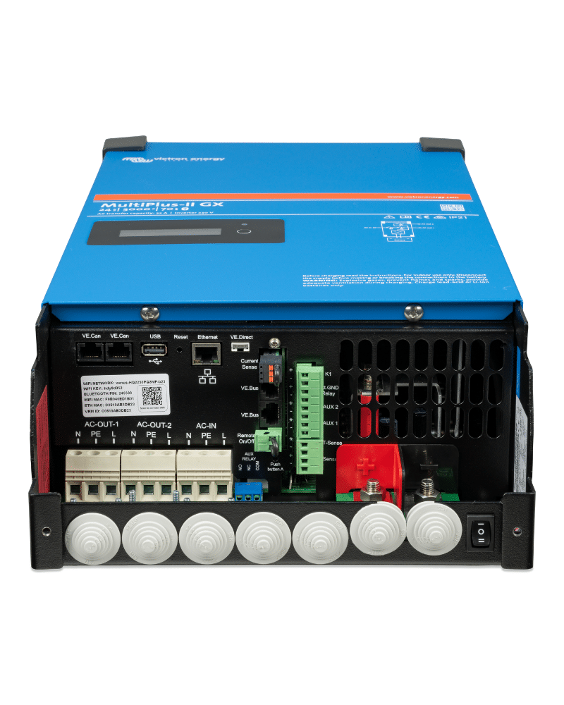 Engineered for off-grid, backup, marine, RV, and hybrid solar systems, the MultiPlus-II GX delivers exceptional reliability, smart energy management, and full system visibility through an integrated display plus Wi-Fi/Ethernet connectivity.
