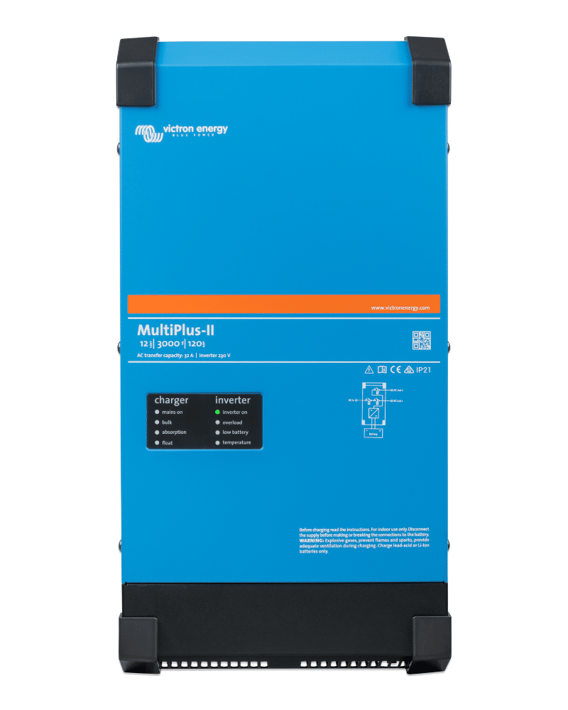 The Victron MultiPlus-II Inverter/Charger 230V is a professional-grade power solution that combines a high-performance pure sine wave inverter with an advanced adaptive battery charger in a single compact unit. Designed for demanding applications such as off-grid solar systems, marine installations, RVs, and backup power systems, the MultiPlus-II delivers reliable AC power with seamless switching and intelligent energy management.