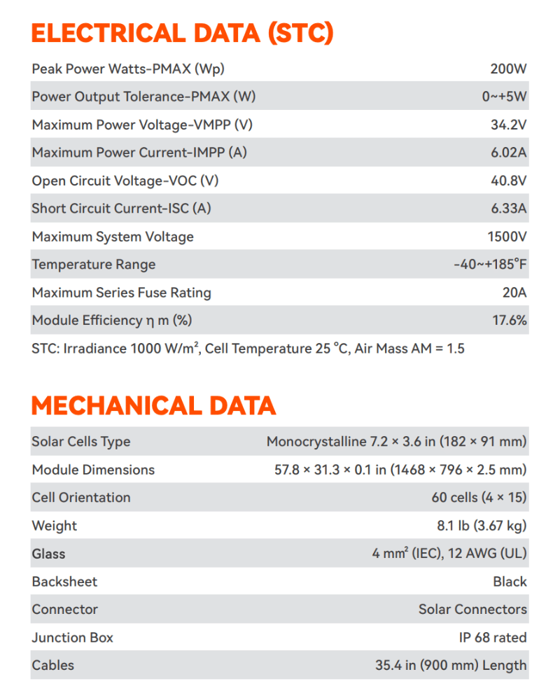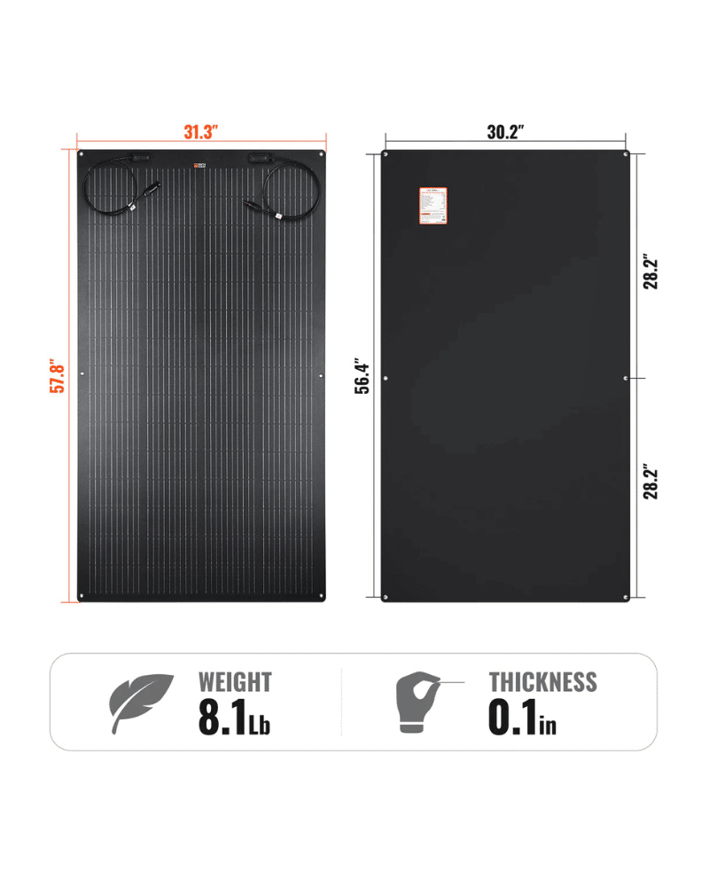 • 200W high-efficiency monocrystalline (PERC) flexible solar panel